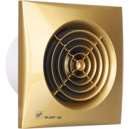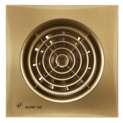 S&P SILENT-100 CHZ GOLD - intelligent gold bathroom and WC extractor fan with adjustable timer, humidity sensor, and stylish design. Quiet and smart ventilation solution.