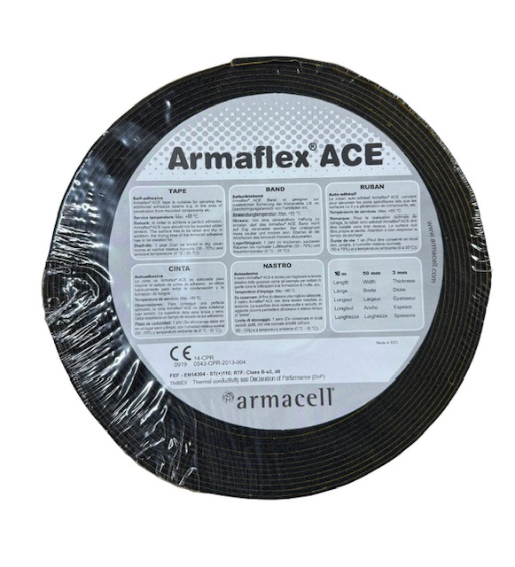 – Armacell ARMAFLEX ACE is a high-quality black condensate insulation self-adhesive tape with a closed-cell structure that provides excellent protection against moisture and heat loss.