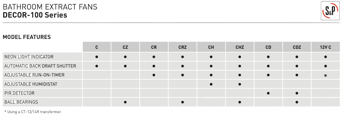 – The DECOR-100 CHZ includes a neon indicator light, an automatic backdraft shutter to prevent reverse airflow and reduce heat loss, Class II insulation and an IPX4 protection rating for safe use in humid environments.