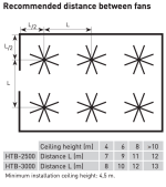 S&P HTB-2500/3000 series (models Ø 250 cm and 300 cm) are a high-performance, large-diameter ceiling fans designed for efficient air circulation in expansive spaces. Featuring an 8-blade aluminium propeller and a brushless DC motor, they offers six adjustable speeds and reversible rotation, making it ideal for industrial halls, sports facilities, and commercial areas.